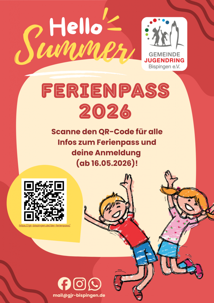 Der Ferienpass für die Sommerferien ist eine unserer Hauptaufgaben. Wir stellen für die Ferienwochen ein buntes Programm zusammen, an denen alle Schulkinder ab 6 Jahren teilnehmen können. Das Programm reicht von kürzeren Aktivitäten (z. B. Bastelnachmittage, Minigolf, Kochen usw.) bis hin zu ganztägigen Ausflügen. Alle Aktionen werden von Bispinger Vereinen, Akteuren, Organisationen usw., als auch von Anbietern aus der Region durchgeführt und es ist in der Regel auch immer ein Mitglied vom Gemeindejugendring als weitere Aufsichtsperson dabei. Darüber hinaus gibt es im Ferienpass auch Gutscheine, z. B. von der Eisdiele, vom Freibad usw.